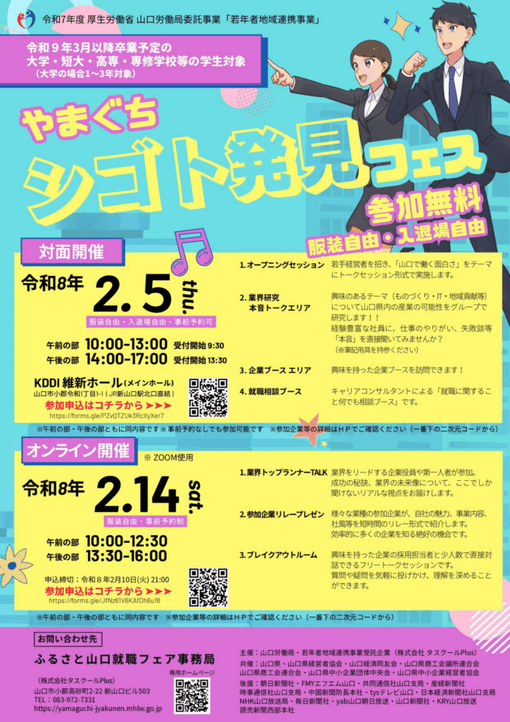 【参加費無料】やまぐちシゴト発見フェス《対面2/5(木)、オンライン:2/14(土)》